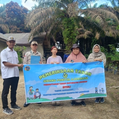 Kementerian ATR/BPN Kab. Lamandau melakukan Pemeriksaan Tanah dan Sidang Panitia Ajudikasi Pendaftaran Tanah Sistematis Lengkap (PTSL) Tahun 2025 di Desa Tri Tunggal, Senin (20/10/2025).