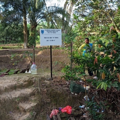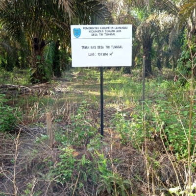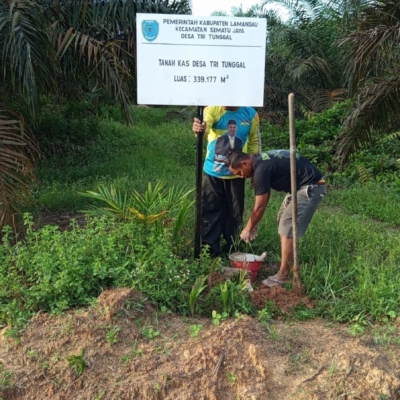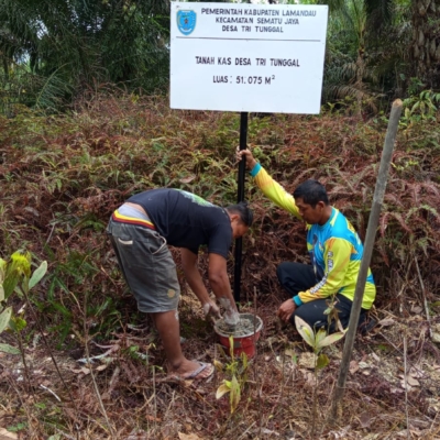 Pemerintah Desa Tri Tunggal melakukan pemasangan Plang pada Tanah Kas Desa